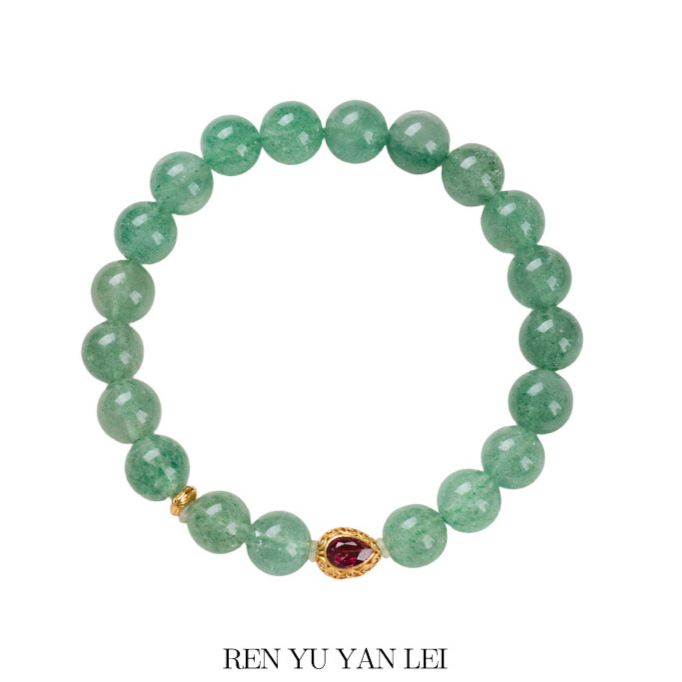 8MM Green Strawberry Crystal Bracelet Protects Energy Purification Balance